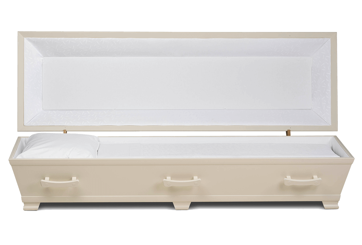Akvarell Sober är en kista i milda och mjuka toner. Den mjukt brutna lacken skapar en sober och ombonad känsla.