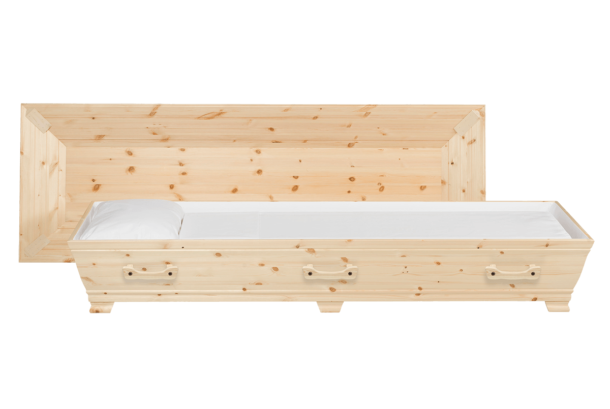 Natur plus i obehandlad furu är en rymligare och längre kista än våra standardkistor, tillverkad helt och hållet av naturliga och förnyelsebara råvaror. Kistans stomme är gjord av massiv furu, ett träslag känt för sin styrka och tidlösa skönhet. Den obehandlade ytan bevarar träets naturliga struktur och ger en varm och inbjudande känsla. Kistan är limmad med ett miljövänligt vattenbaserat lim, fritt från skadliga ämnen.
